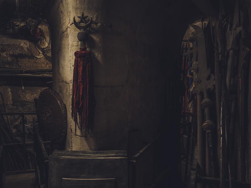 Nous quittons les sons de la forêt pour entrer au cœur de la chevalerie guerrière. Perceval est sur le champ de bataille, et maintenant qu’il la voit et qu’il l’entend, il perd le sens de la chevalerie. Nous sommes face à notre propre sentiment d’impuissance. Trois gouttes de sang de Perceval sont tombées au sol, d’autres suivront. Sur scène, la bobine de l’enregistreur Nagra qui nous contait cette fabuleuse histoire se bloque. Elle déraille, repart en arrière et tourne en boucle tandis que nos deux clowns sortent de leur armure. Il faut bien continuer l’histoire ! La digression, la joie et la couleur ont maintenant toute leur place sur la scène, dans l’expression riante de leur mélancolie et de leur heureuse impuissance.